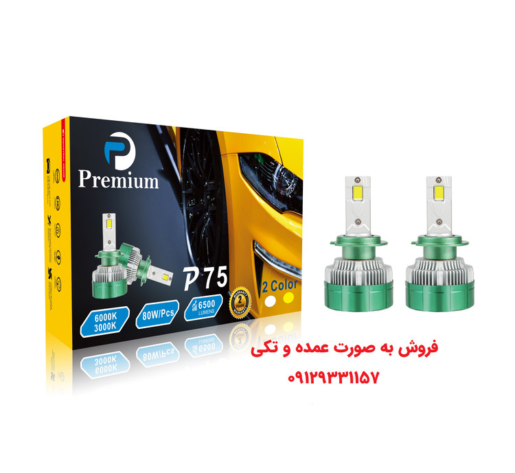 هدلایت p75 پرمیوم دو رنگ سفید زرد کنترل دار پایه 9005 پایه مسی مناسب برای 206 و 207 و پرشیا و تمام پایه های پرژکتور